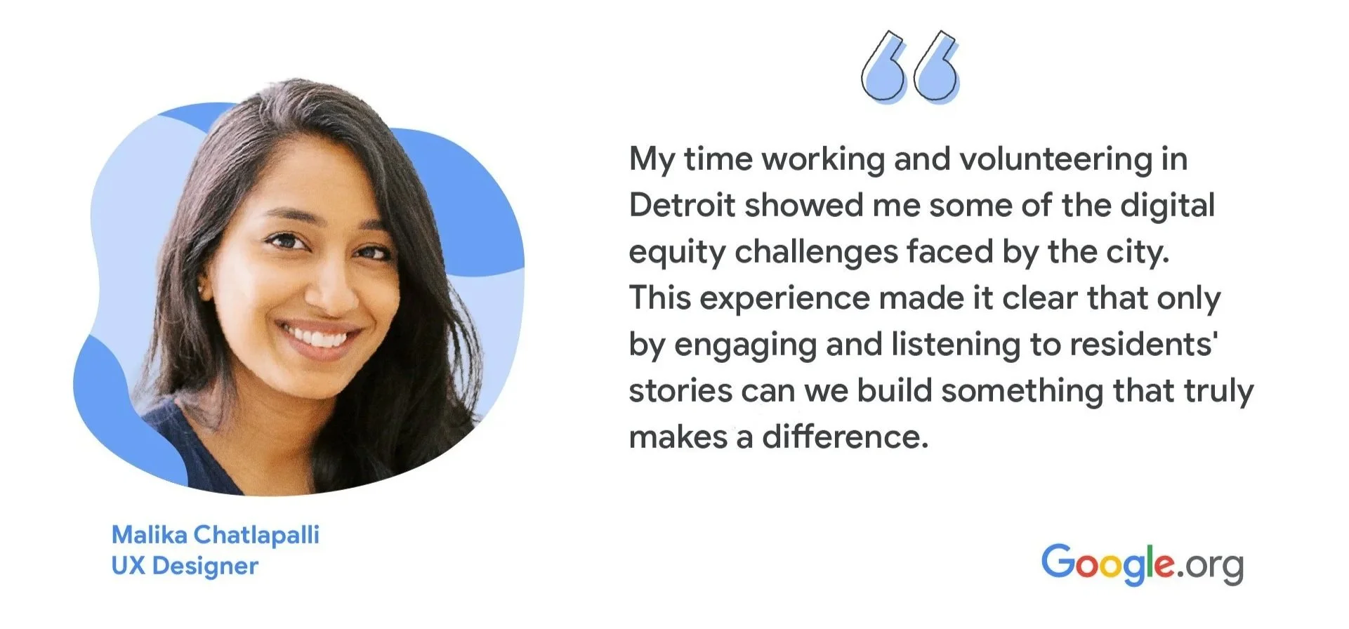 As the UX lead from Google.org, I guided the team through community research. We started with an online survey through Google Forms and followed up with phone calls for residents less comfortable with technology. Our findings were:
